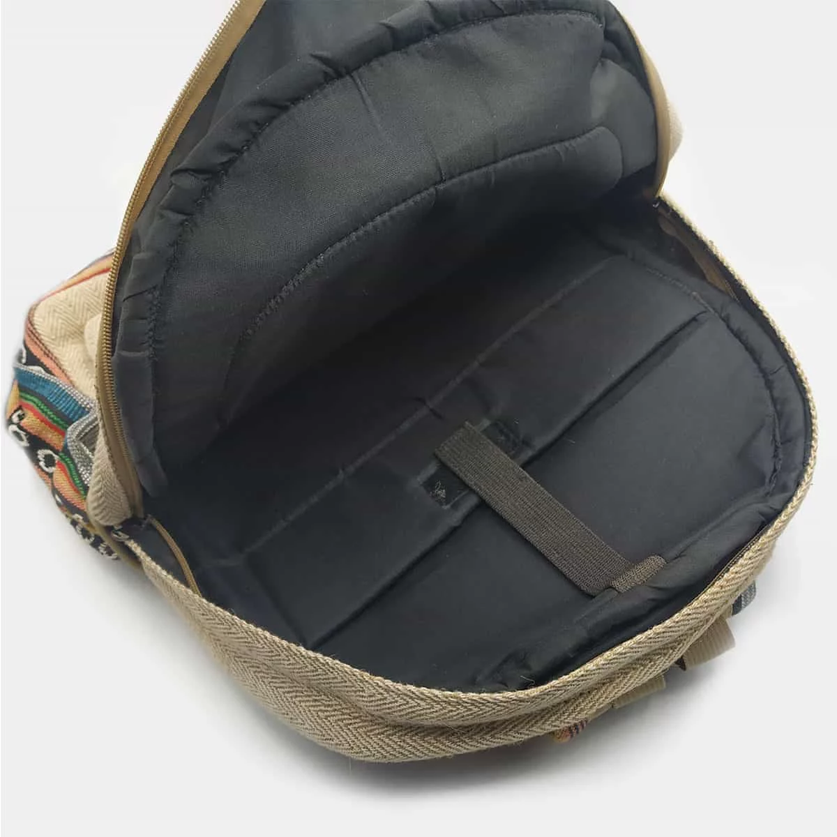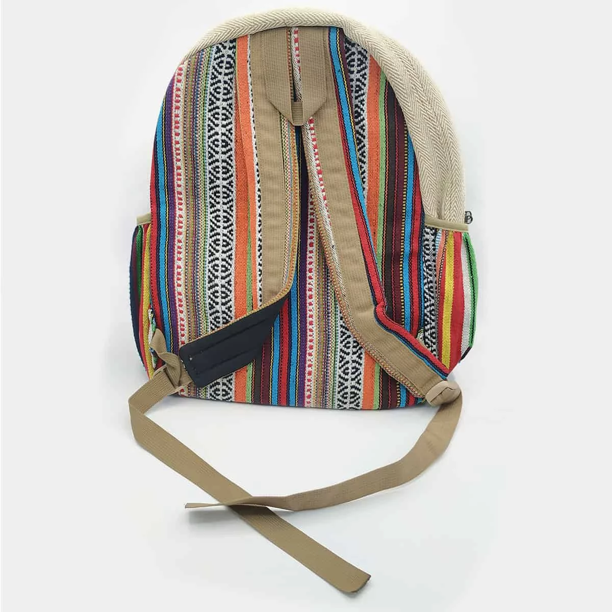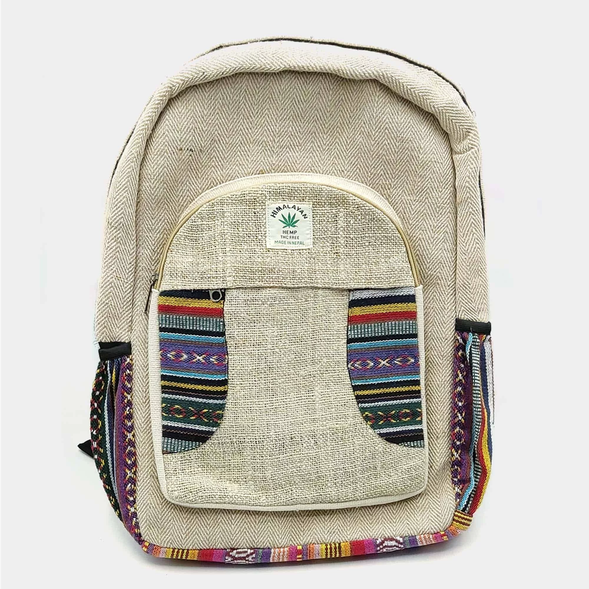 Esta Mochila em Cânhamo 100% Natural é feita à mão no Nepal usando cânhamo orgânico dos Himalaias e algodão. É amiga do ambiente e durável. É confortável de usar e muito leve de transportar, o que torna esta mochila perfeita para viagens.